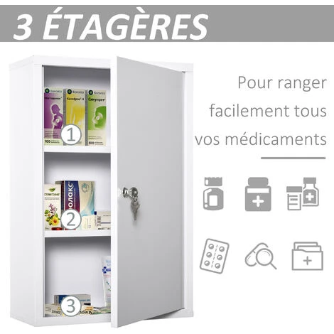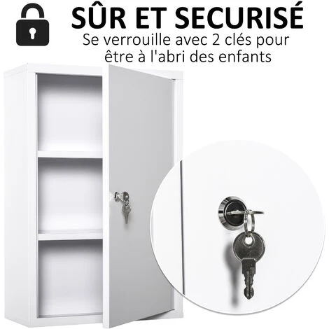 – Armoire pharmacie verrouillable : serrure intégrée (2 clés fournies)