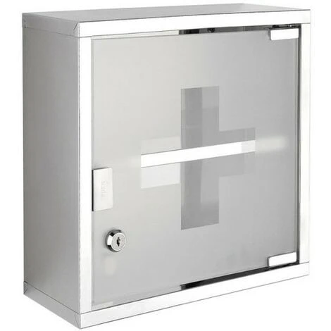 Armoire à pharmacie Metaform Mayday en acier inoxydable et verre, avec clé
