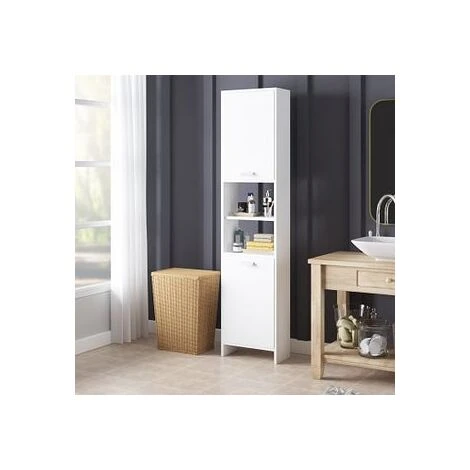 Meuble colonne salle de bain, Étagère de Rangement Armoire Salle de Bain Haute Colonne avec 2 Portes – Couleur blanche – 39.5×19.3x170cm