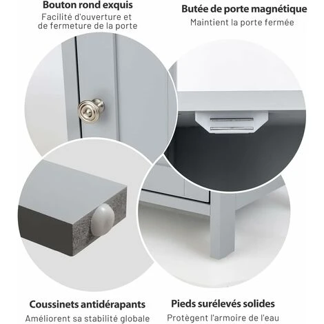 - Livraisons: 1 x Meuble de rangement à poser pour salle de bain 1 x Mode d’emploi