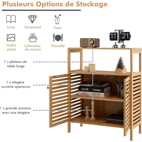 - 2 étagères ouvertes et 1 armoire offrant un grand espace de rangement