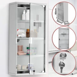 Rangez et sécurisez tous vos médicaments et autres produits pharmaceutiques grâce à cette armoire à pharmacie à 11 compartiments en acier. Le mécanisme de verrouillage est particulièrement important pour les familles avec enfants, car il offre une garantie de sécurité. Cette armoire peut être placé à la hauteur souhaitée dans la salle de bains, le couloir ou un autre chambre, car son montage mural est très simple.