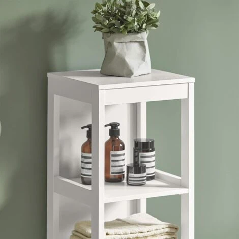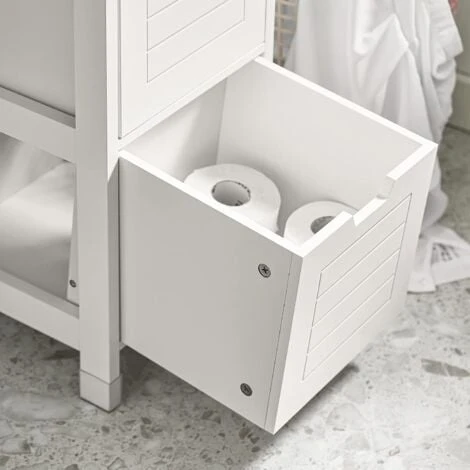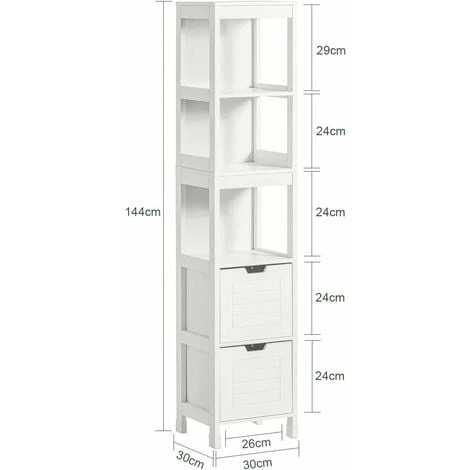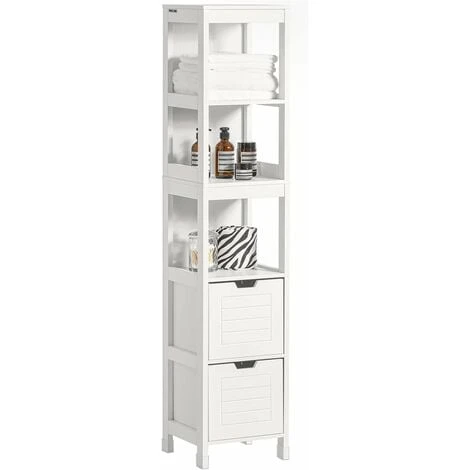 – Meuble Colonne de Salle de Bain avec 4 étagères et 2 tiroirs. offre un grand espace suffisant pour le rangement de vos accessoires quotidiens dans la salle de bain.
