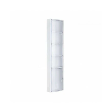 Meuble de salle de bain vertical glacé, avec 3 portes et 2 tablettes amovibles, parfait pour garder la salle de bain bien rangée. Il dispose d’un double système de fixation : vis et Glue & Fix sans système de perçage. Supporte un poids maximum de 8 kg.