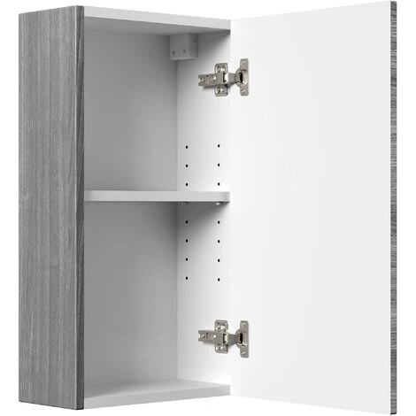 dimensionsDimension:Meuble haut (L/H/P) 35/62/16,6 cm, Contenu de la livraison Meuble haut avec 1 étagère et 1 Porte. Avantage Made in Germany :Meuble de salle de bain de qualité Allemande – Made in Germany Marque enseigne: Située à Brême: Fabrication et matériaux de haute qualité. Rapport qualité-prix très avantageux – Prix usine. Nous sommes fiers de nos méthodes de production respectueuses de l’énergie et du climat. Conseils de montage: Le meuble est livré en kit. Une notice de montage explicite est fournie avec et peut être également téléchargée sur la fiche du produit.Seul le meuble vient se fixer au mur. Les charnières peuvent être montées aussi bien sur la gauche que sur la droite (Sauf pour Avec un rabat pour le linge). Le matériel de montage mural n’est pas inclus. Veuillez utiliser un matériel de fixation murale adapté aux conditions de votre lieu de résidence.Meuble haut 62 en décor chêne argenté MatériauxComposants:L’entreprise
