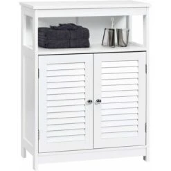 - Grand espace de rangement : Ce meuble de salle de bain optimise l’espace disponible. Une étagère supérieure large et une étagère ouverte conviennent pour des plantes en pot, de l’aromathérapie, des cadres photo, etc. Le placard avec portes offre un rangement fermé pour les serviettes, le gel douche ou le papier toilette.