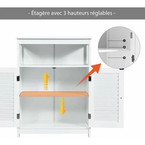 - Étagère réglable : l’étagères à l’intérieur de l’armoire est réglable et vous pouvez choisir entre 3 hauteurs. Vous pouvez régler la position de l’étagères en fonction de la hauteur des objets à placer.
