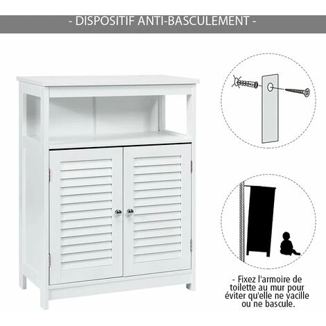 - Dispositif anti-basculement : ce meuble de salle de bains est équipé d’un dispositif anti-basculement pour vous. Vous pouvez l’utiliser pour fixer l’armoire de salle de bains au mur, ce qui est plus stable et plus sûr.