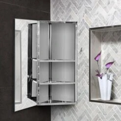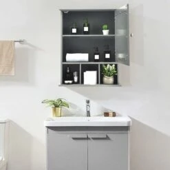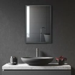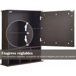 Armoire Miroir Murale Salle De Bain Toilette Dim. 40L X 12l X 60H Cm Acier Inox. Noir Verre