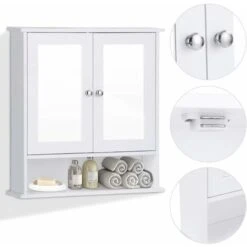 HOMCOM Armoire Avec Miroir En Bois Rangement Salle De Bain Fermeture Porte Tampon MDF Blanc
