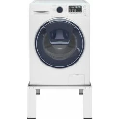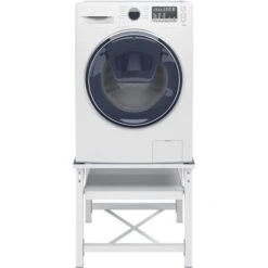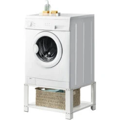Socle Pour Machine à Laver En Acier Blanc Accessoire Avec étagère 63x54x32 Cm