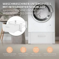 Socle Pour Machine à Laver En Acier Blanc Accessoire Avec Tiroir 63x54x31,5 Cm