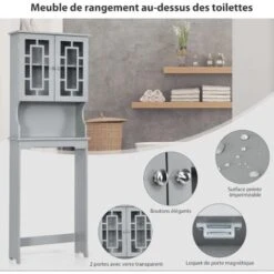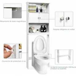 COSTWAY Meuble Dessus Toilettes WC 2 Portes Armoire De Toilette Étagère De Salle De Bain