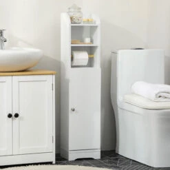 Meuble De Toilettes SIBERIA 1 Porte – 2 Niches / Blanc/ 15x30x119