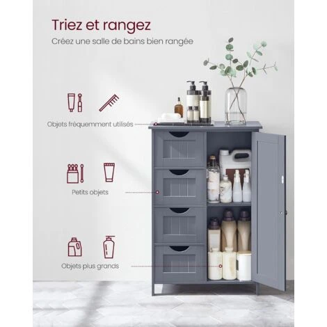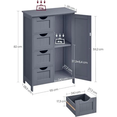 - [Spacieuse et compacte] Cette armoire de rangement occupe une surface au sol de 30 x 55 cm et pourtant elle offre suffisamment d’espace de rangement. Cette commode vous permet d’utiliser au mieux l’espace de votre salle de bain grâce à son format compact